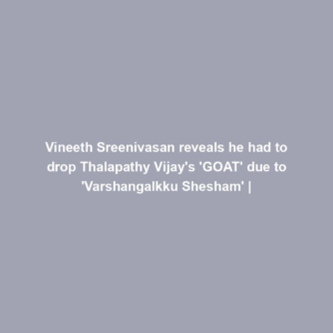 Vineeth Sreenivasan reveals he needed to drop Thalapathy Vijay’s ‘GOAT’ attributable to ‘Varshangalkku Shesham’ |