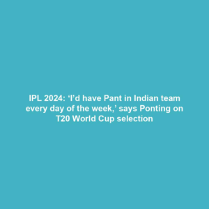 IPL 2024: ‘I’d have Pant in Indian workforce on daily basis of the week,’ says Ponting on T20 World Cup choice