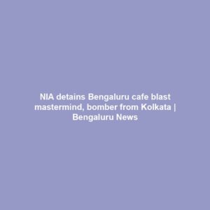NIA detains Bengaluru cafe blast mastermind, bomber from Kolkata | Bengaluru Information